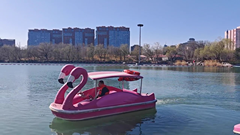 陶然亭公園,游客乘船賞春色。新京報(bào)記者 薛珺 攝