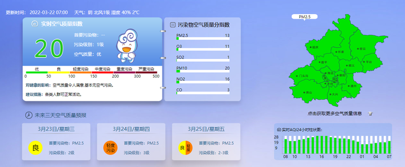 據(jù)北京市生態(tài)環(huán)境監(jiān)測中心今早7時(shí)數(shù)據(jù),目前實(shí)時(shí)空氣質(zhì)量指數(shù)20,空氣質(zhì)量優(yōu)。