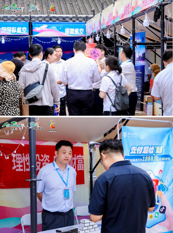 現場特設“文旅+航司”“文旅+金融”專區(qū),多家航司與金 融企業(yè)展位前人頭攢動,游客市民在專區(qū)現場就能了解到文 旅航線產品、航空出行優(yōu)惠以及“ 百城百區(qū)” 積分兌換、優(yōu)惠 券、立減紅包等惠民政策。
