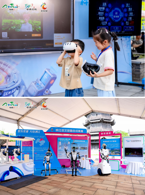 一步一景,耳目一新。5 大“文旅+科技” 消費新場景體驗 區(qū)成為現場亮點 ,特色科技展區(qū)前游客絡繹不絕?,F場埃夫 特啟智機器人、墨甲機器狗驚艷亮相,與觀眾現場互動;三 七互娛 AI 生圖體驗區(qū)通過智能算法將游客形象實時融入山 水畫卷;特色飛行航模吸引不少市民、游客;上海機遇的 VR/AR 設備,則讓前來體驗的游客們大呼過癮;三維掃描后, 進行區(qū)塊鏈數字權益認證的蕪湖鐵畫數字藏品收獲了眾多 “ 收藏家” 的注意。還有科大訊飛大模型、創(chuàng)壹科技AI 體驗、鳩江區(qū) 3 大科技企業(yè)6 大特色機器人展示互動等眾多科技內容,盡顯“文旅+科技” 的奇幻魅力。
