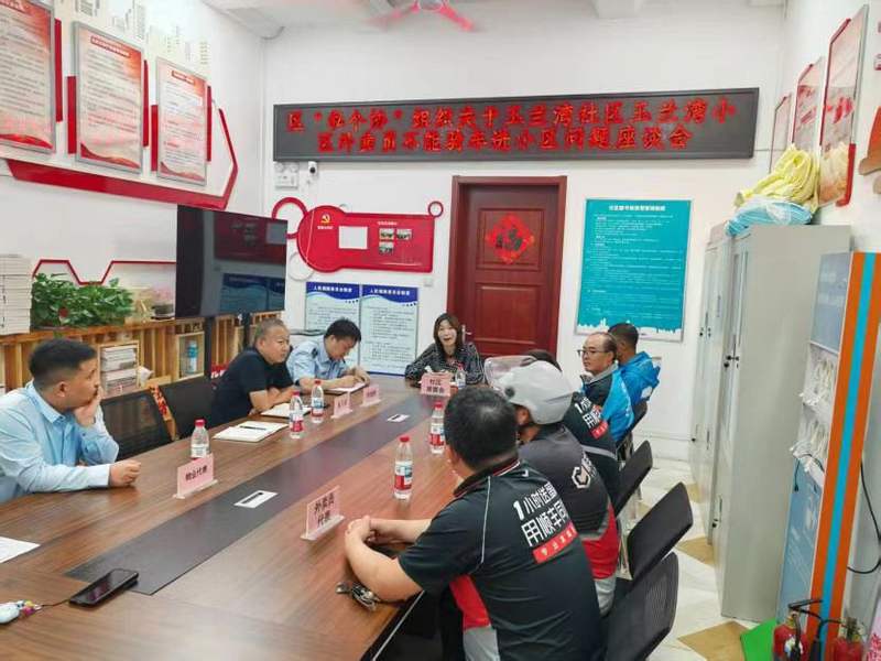 玉蘭灣小區(qū)面積大、人口多,日均外賣(mài)配送量高達(dá)一千多單。為了居民安全,外賣(mài)騎手一直被禁止騎電動(dòng)車(chē)進(jìn)入小區(qū),只能步行穿梭于樓棟之間。這項(xiàng)規(guī)定雖然保障了小區(qū)安全,卻給騎手們帶來(lái)了超時(shí)風(fēng)險(xiǎn)和體力負(fù)擔(dān)?!拔覀円仓雷约阂s時(shí)間送單,騎電動(dòng)車(chē)普遍較快,存在一定的安全隱患,但徒步配送確實(shí)降低了送餐效率,一單超時(shí)不僅會(huì)影響后續(xù)訂單,甚至我們還會(huì)被罰款200元,導(dǎo)致一天白干?!泵鎸?duì)騎手反映集中的問(wèn)題,來(lái)自社區(qū)居委會(huì)、物業(yè)公司以及區(qū)私營(yíng)個(gè)體經(jīng)濟(jì)協(xié)會(huì)、九棵樹(shù)市場(chǎng)監(jiān)管所的相關(guān)負(fù)責(zé)同志結(jié)合社區(qū)工作實(shí)際,充分研究分析,努力尋求問(wèn)題的解決辦法。