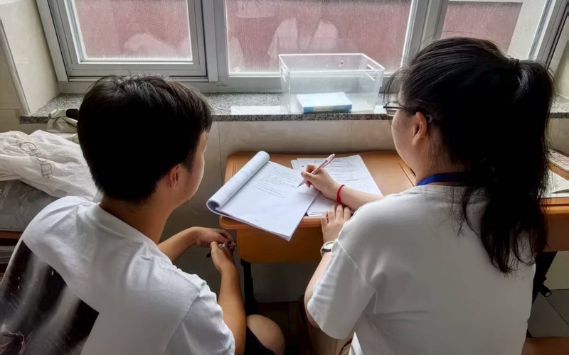 侯婷在北京師范大學第三附屬中學實習時,給高三學生答疑。 受訪者供圖