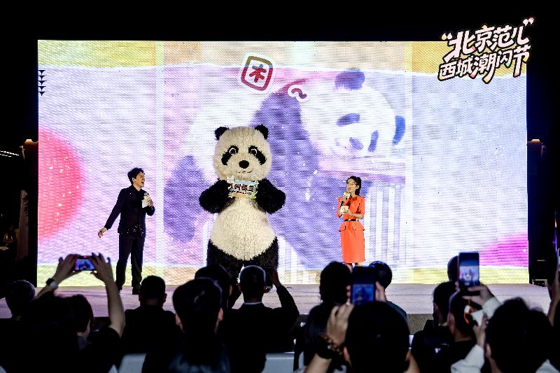 9月27日,“北京范兒”潮閃節(jié)啟動儀式在西城區(qū)北京坊二期舉辦,西城潮閃周同步開啟。圖為熊貓“萌蘭”亮相啟動儀式。