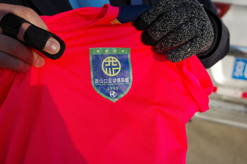村里踢球的人越來越多,到1995年,西山口村自發(fā)成立了自己的足球隊。那年,還是年輕小伙兒的張志強,為隊伍設計了專屬的隊標:圓圈之中,“西山口”三個字巧妙地包含其中。“這個標到現(xiàn)在用了小30年了,最開始這標都沒能印在隊服上,還是大家伙兒用筆,一筆一畫地勾勒在衣服上的?!?/p>