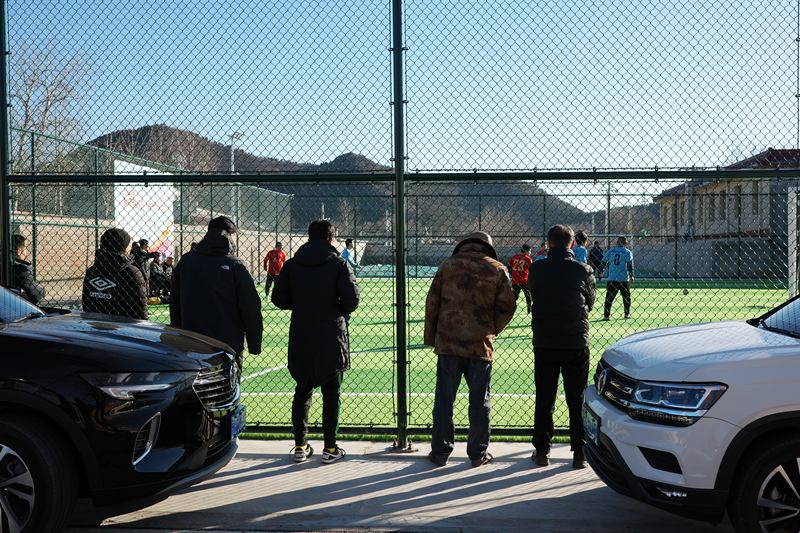 一個平凡周末,昌平區(qū)十三陵鎮(zhèn)西山口村委會門前的空地被汽車擠得滿滿當當。繞過村委會,向北轉一個彎,叫喊聲,喝彩聲,砰砰的撞擊聲會隨著腳步由遠及近。不遠處,嶄新的球場上激戰(zhàn)正酣。拼搶,傳導,過人,來不及猶豫,一記抽射就把皮球送入了網(wǎng)兜?!捌粒『们?!”那是西山口村迎來的第一場區(qū)級足球邀請賽,圍觀的老少爺們兒接連喝彩,臉上帶著興奮,和來自“東道主”的熱情。對于已成立近30年的西山口足球隊來說,這一刻意義非凡——他們終于在家門口擁有了一片屬于自己的綠茵場地。