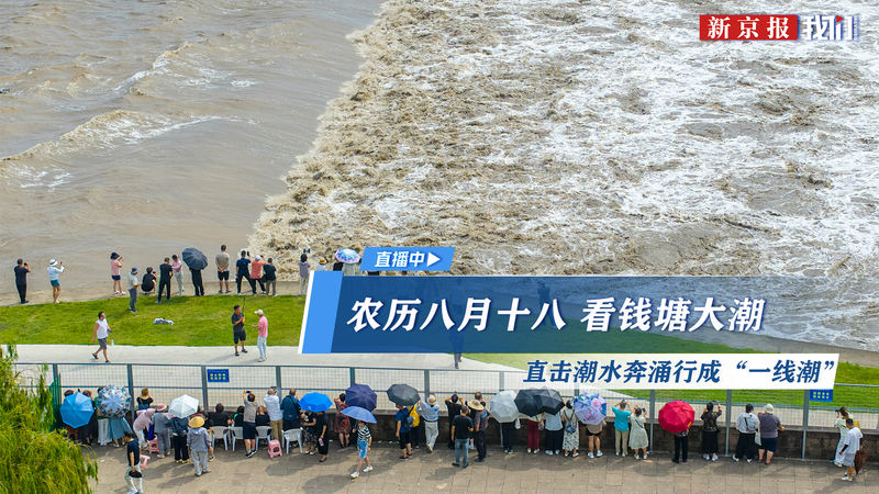 “八月十八潮,壯觀天下無(wú)。”每年多地游客紛至沓來(lái),在錢塘江多個(gè)觀潮佳點(diǎn)觀賞氣勢(shì)磅礴的錢塘江大潮。海寧縣鹽官鎮(zhèn)潮勢(shì)最盛,且以齊列一線為特色,故有“海寧寶塔一線潮”之譽(yù)。在鹽官鎮(zhèn)的老鹽倉(cāng),一道“丁字壩”直插江心,宛如一只力挽狂瀾的巨臂,形成“回頭潮”激浪千重。新京報(bào)直擊觀潮現(xiàn)場(chǎng),讓你足不出戶看交叉潮、一線潮、回頭潮等奇觀。