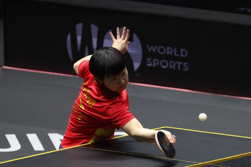 10月5日,WTT中國大滿貫女單決賽,王曼昱戰(zhàn)勝隊(duì)友孫穎莎,奪得冠軍。王曼昱也成了本站女單、女雙兩個(gè)項(xiàng)目的“雙冠王”。圖為王曼昱發(fā)球。