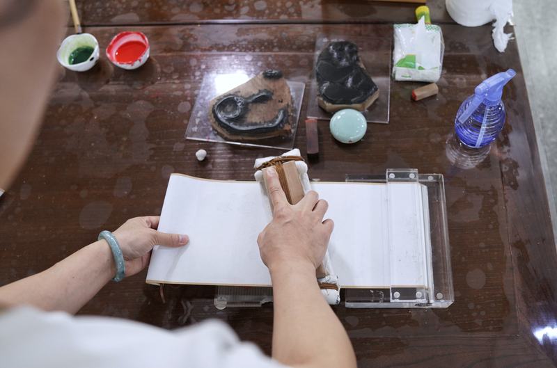 為何只學習了三道工序中的其中一步?孫紅霞感慨,“木版水印”技藝過于繁瑣,不可能一個人完全完成,“一個人用一輩子學好其中的一道工序,已是難得?!?/p>
