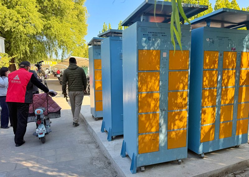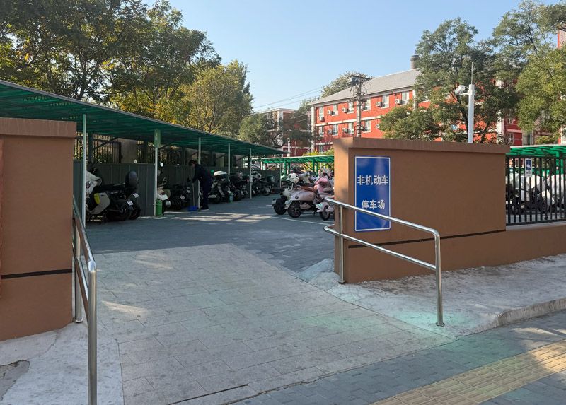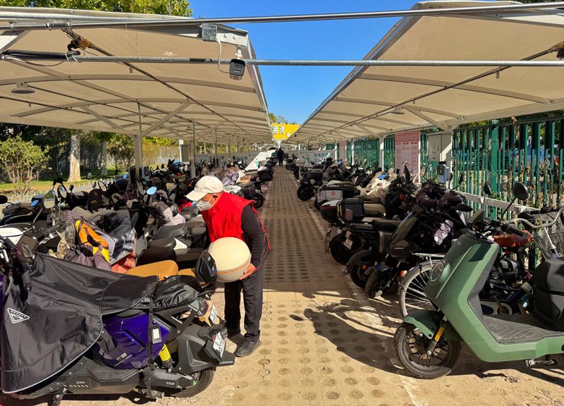 朝陽公園西4門附近,麥子店街道整合建成了一處大型智能充電車棚,新增停車面積超1800平方米,可同時容納500余輛非機(jī)動車充電停放。