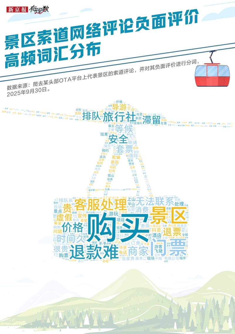 從游客點(diǎn)評(píng)看,除了對(duì)平臺(tái)機(jī)械性功能吐槽外(退費(fèi)、客服等),費(fèi)用過重是旅行中最主要的問題,有些景區(qū)的來回索道纜車費(fèi)用已經(jīng)超過了門票。高昂的疊加費(fèi)用讓不少游客直呼“玩不起”,兩個(gè)人想爬趟山?jīng)]有個(gè)千八百的根本下不來。同時(shí),在一些跟團(tuán)游中,導(dǎo)游為壓縮行程、確保按時(shí)完成游覽,留給自由活動(dòng)的時(shí)間極短,游客為避免錯(cuò)過景點(diǎn),被迫選擇乘坐索道。