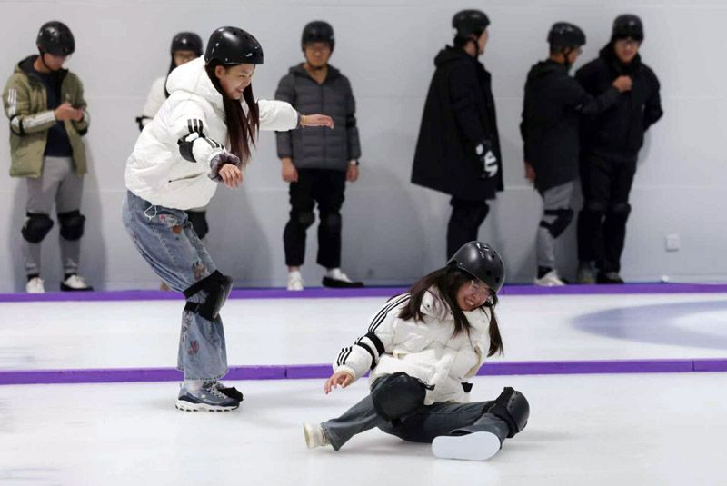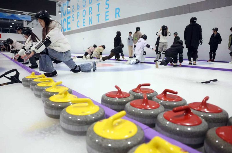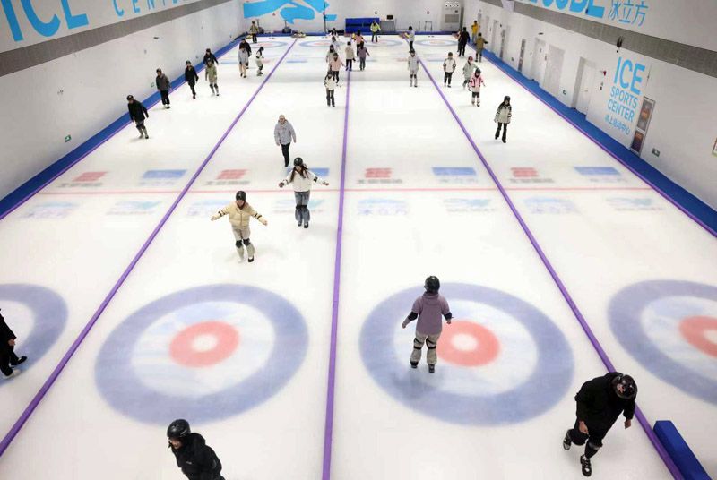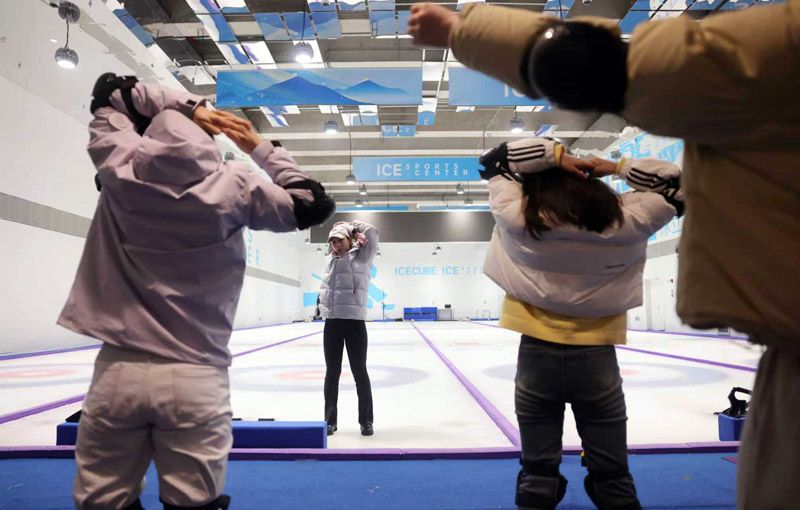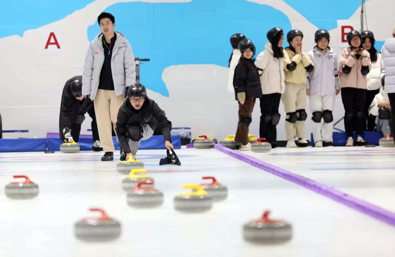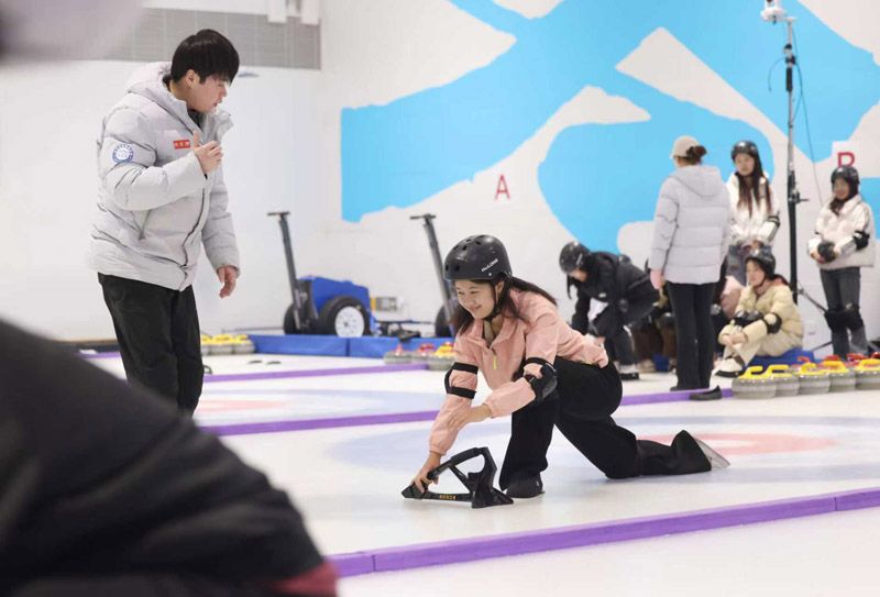 10月23日,在國(guó)家冰上運(yùn)動(dòng)中心(冰立方)的冰壺館內(nèi),中國(guó)科學(xué)院大學(xué)的學(xué)生們參加體育選修課——冰壺課。據(jù)介紹,這是中國(guó)科學(xué)院大學(xué)開(kāi)展的系列特色課程之一,大學(xué)生通過(guò)參與攀巖課、冰壺課等特色體育選修課,強(qiáng)身健體,培養(yǎng)不畏挑戰(zhàn)的人生信念。圖為專業(yè)教練輔導(dǎo)學(xué)生練習(xí)冰壺基礎(chǔ)滑行和冰壺投壺姿勢(shì)。
