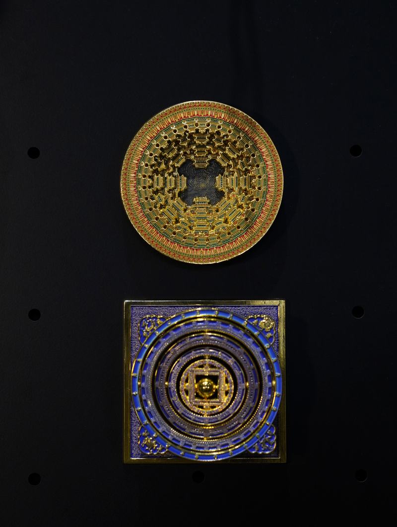 冰箱貼復刻了實物最大的層疊式特點。底層為藍綠色的星空圖樣,加之以夜光工藝;五層立體結(jié)構(gòu),每一層都可以拆卸,也可以組裝在一起。為了還原彩繪紋樣,增加顏色穩(wěn)定性和光澤度,表面采用了手工琺瑯描色與玻璃漆上色。由于工序復雜,初始的日產(chǎn)量僅有400個。