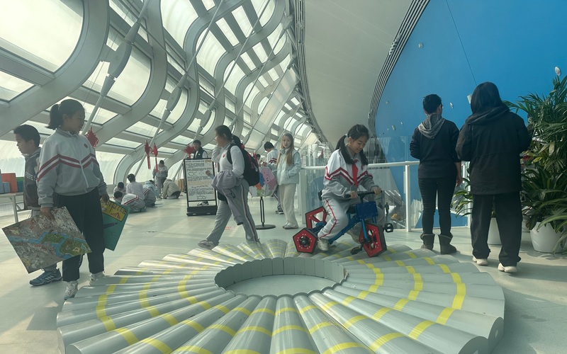 從數(shù)學(xué)體驗(yàn)區(qū)走出,孩子們又舉著打卡地圖進(jìn)入科學(xué)體驗(yàn)區(qū),從彈射飛機(jī)、VR體驗(yàn)到與AI對弈、探索清潔能源,超過45個互動項(xiàng)目讓學(xué)生們體驗(yàn)。府學(xué)胡同小學(xué)科學(xué)老師徐巖介紹,科學(xué)區(qū)的體驗(yàn)項(xiàng)目依托該??仗鞎骸⑻轿?、芯智書院、蔚藍(lán)書院四大書院,利用書院下設(shè)的特色課程設(shè)計(jì)互動體驗(yàn)項(xiàng)目,讓孩子可以挑選喜歡的領(lǐng)域體驗(yàn)、游戲,還能接觸AI畫筆創(chuàng)作、大模型編程、腦電波意念控制等前沿“黑科技”。同時,她表示,該校于這個學(xué)期開啟了人工智能通識課,同學(xué)們在學(xué)習(xí)課堂理論的基礎(chǔ)上,可以在科技節(jié)親身體驗(yàn)人工智能帶來的便利。
