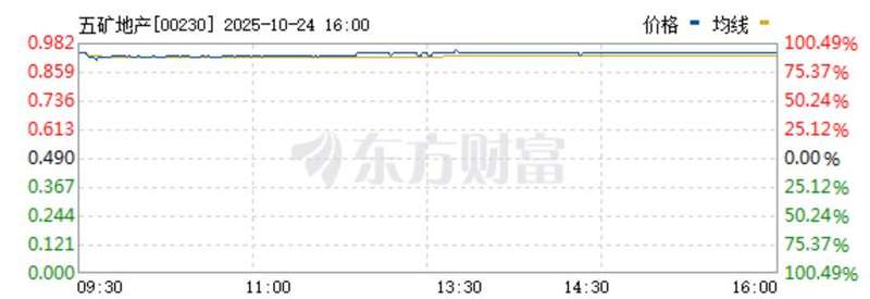 停牌近一個(gè)月后,五礦地產(chǎn)復(fù)牌迎來暴漲行情。10月24日,五礦地產(chǎn)高開91.67%,截至收盤,每股報(bào)0.94港元,大漲91.84%。